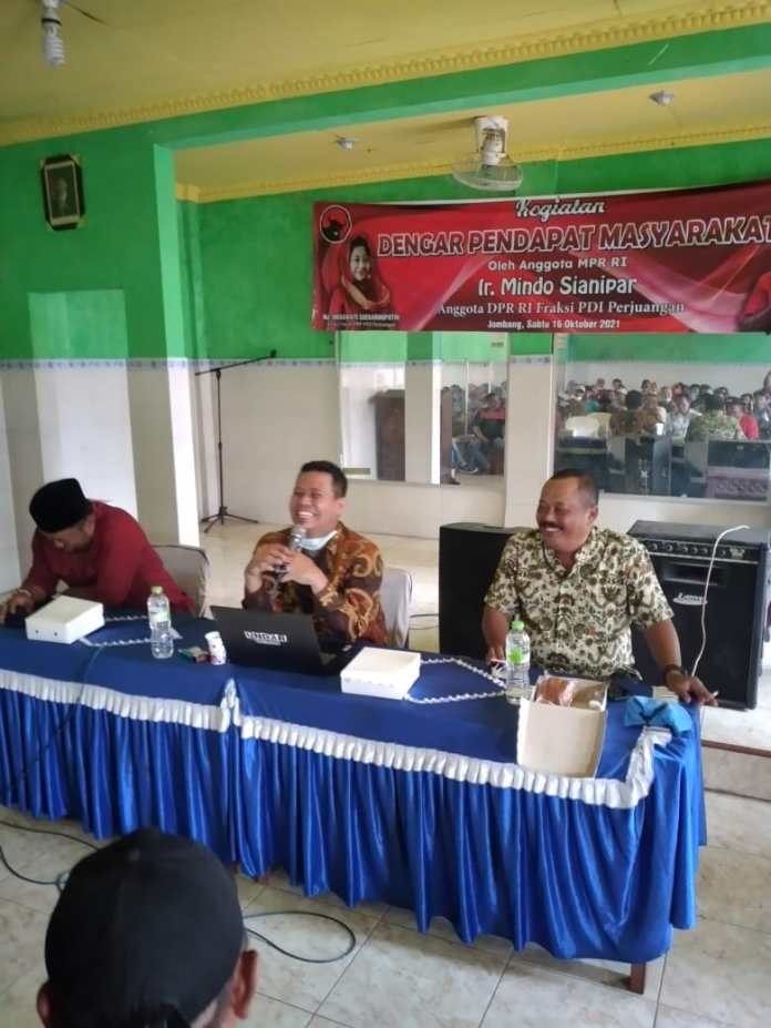 Melalui tim Ahli Krismianto, Ir. Mindo Sianipar menyampaikan, sebagai Anggota DPR RI dari daerah pemilihan Jombang, ia memandang perlu untuk turun ke bawah dan berbicara langsung dengan masyarakat serta harus mendengar suara mereka.