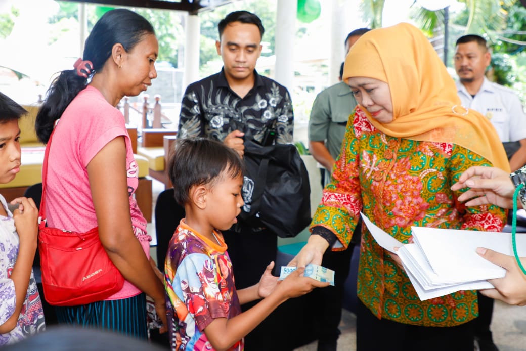 Berlangsung hangat, sebelum membagikan sembako, Gubernur Khofifah menyempatkan berdialog kecil dengan mereka. Seperti menanyakan asal mereka, bagaimana kondisi anak-anak mereka dan juga sekolah anak-anak mereka.