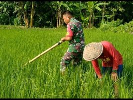 Hama Gulma Jadi Perhatian Khusus, Babinsa Dampingi Petani Lakukan Pembersihan Lahan