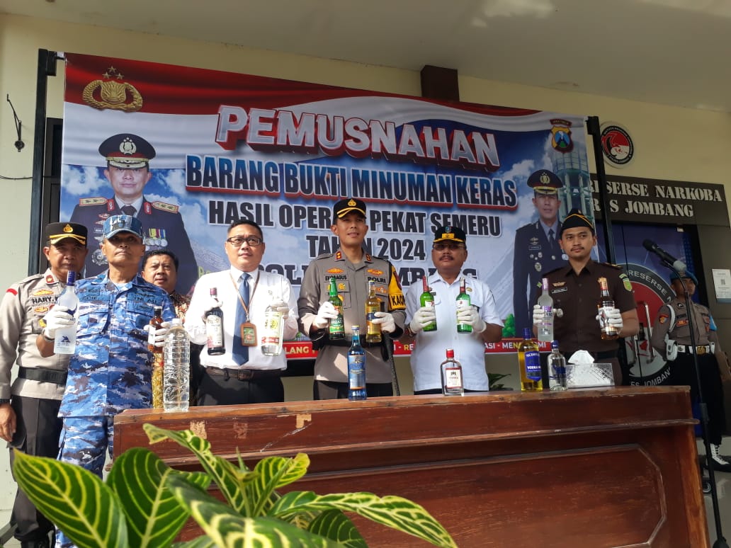Ribuan Botol Miras Hasil Operasi Pekat Semeru 2024 di Jombang Dimusnahkan